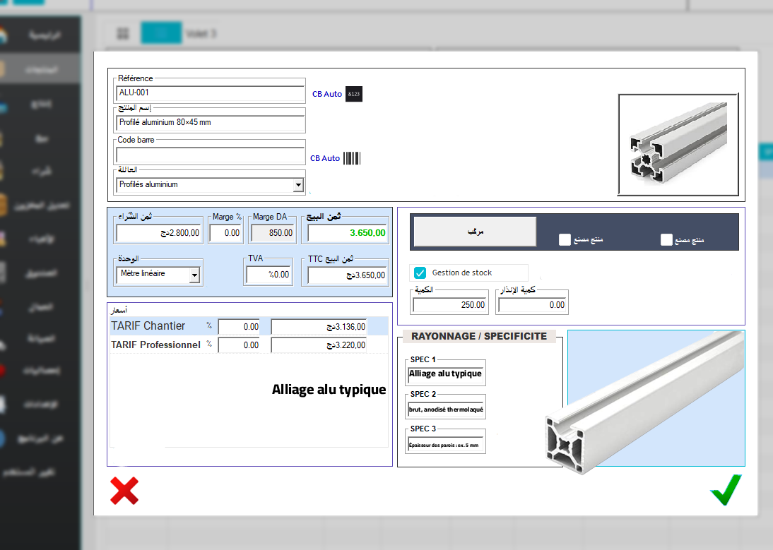 - خصم تلقائي من المخزون بعد كل عملية بيع.(déstockage automatique)