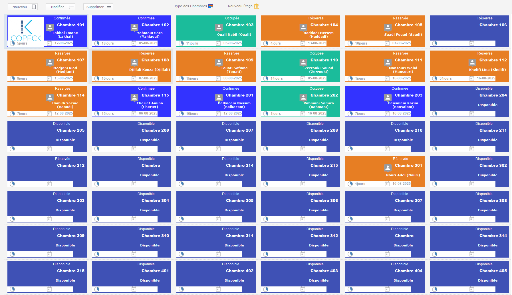 ✅ تقويم الغرف: تشوف فوراً الغرف الفارغة/المحجوزة/المؤجرة