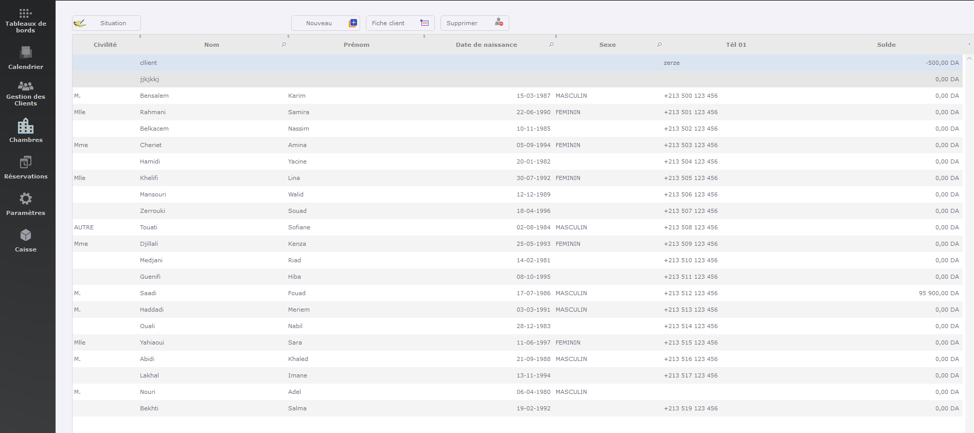حجز الغرف، فوترة احترافية، إحصائيات مباشرة — يدعم العربية والفرنسية