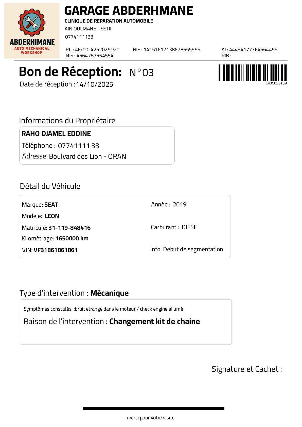 بطاقة مركبة وتاريخ الصيانة لكل زبون