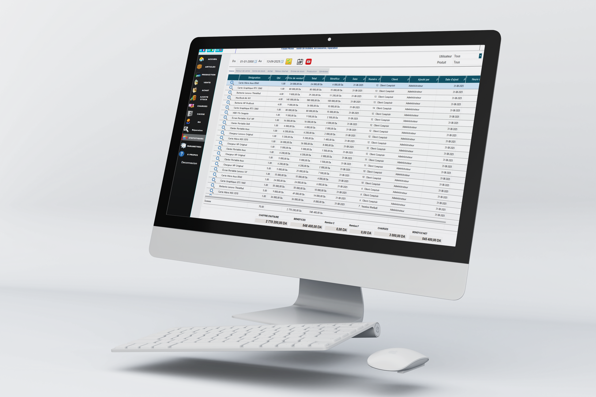 - 🧠 Calcul instantané des marges et statistiques journalières.